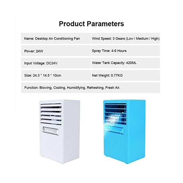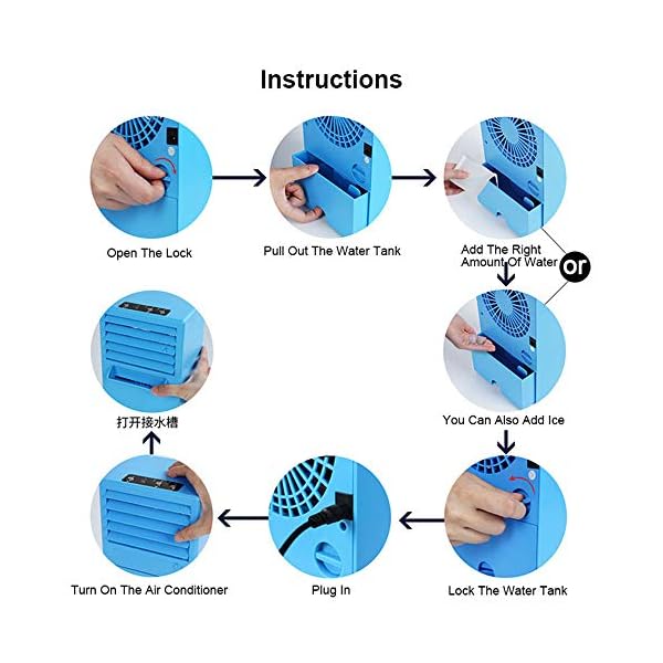 PORTABLE & Power-saving:We Designed Specifically This Lightweight Air Conditioner Fan For Individual Use.it Is Easy To Carry And Not Taking Up Space Space,Great For Bedroom,Office,Dorm,Trip,Etc.enjoy The Coolness And No Longer Have To Worry About The Electricity Bills.just A Few Cents A day.