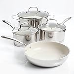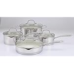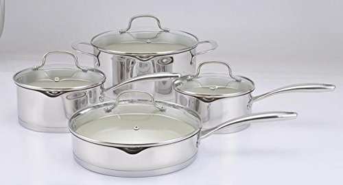 Gorgeous and durable mirror polished stainless steel cookware built to last with innovative, time-saving features with encapsulated 3 ply base for even heating. Etched fill lines make measuring easy. Double riveted, stay-cool cast stainless steel handles. Suitable for all stovetops including induction. Ceramic coated interior are PTFE and PFOA free provides a healthy cooking experience and easy to clean. Tempered Glass Lids to monitor the cooking process.