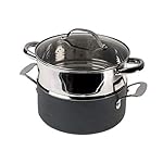 Pressed aluminum inner layer for high heat conductivity and for even surface heating (perfect for searing steaks!).