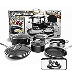 Pioneering granite stone cookware features a mineral infused granite coating that is the perfect blend of nonstick, durability & ease of use. The granite rock cookware is pressed from a single sheet of aluminum and layered 3 times with our proprietary coating for the ultimate nonstick experience which requires no oil, making healthy cooking easy! The extra thick coating is super durable and is scratch resistant and metal utensil safe. The pan’s sleek and modern speckled exterior with neutral tones will match any kitchen décor. Cleanup is a breeze too, and the pans will look new even after years of use.