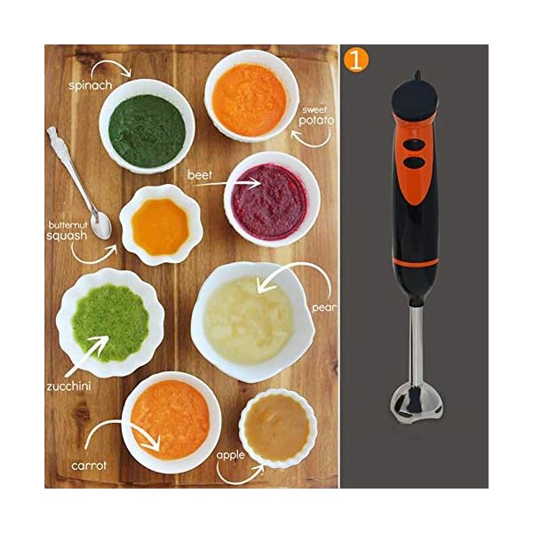 300 W Hand Blender Electric: With 300 W actual wattage, this handheld blender mixes food in seconds. Sharp blade and 2 speeds adjustable blender can mix various food by most suitable speed, ensure the taste. Let’s make delicious food for your baby, family, friends.