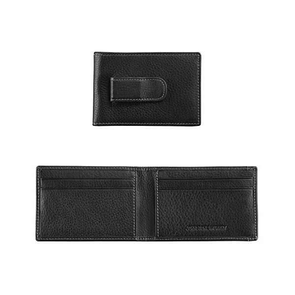 Soft, richly textured South American tumbled leather with contrast topstitching. Leather-covered money clip. RFID blocking shield protects personal data. Thumb-slide ID window. 4 card pockets, 2 slash pockets. Packaged in a signature metal gift box. Gray linen lining. 4”L x 2 7/8”H. Imported.