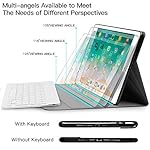 ✔【Multiple Viewing Angles】With this Stylish and Elegant design, it can transform your iPad into a laptop in less than a second. Premium composition PU exterior protects your tablet from accidental dropping and bumps. Soft anti-slip interior protects your tablet from being scratched.3 dents on the case for propping up the tablet into three different viewing angles in landscape mode. Perfect for working, writing, or watching videos