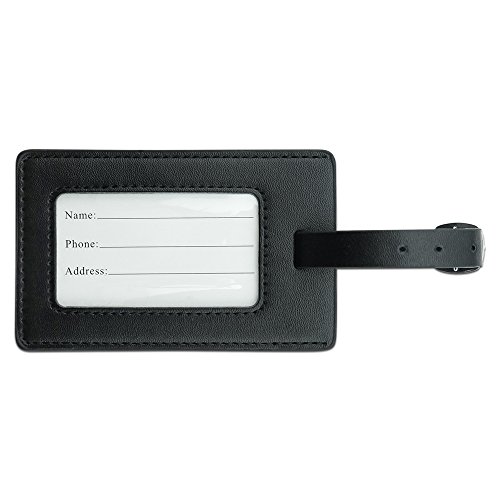 The tag is made of black leather and the design shown is printed on one side with special inks. A card for your address information (included) slips inside and is protected by a clear vinyl window. Sold individually.