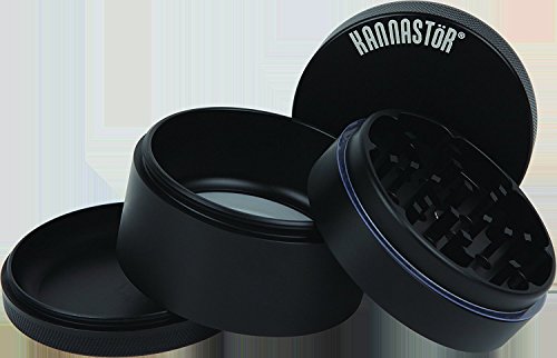 This four piece herb grinder has been a Kannastor favorite for over a decade! Equipped with a replaceable screen, an engineered drop through design that prevents over-shredding and a limited lifetime warranty, this modular grinder is designed to last! Made from 61/61 Anodized Food Grade Aluminum. Kannastor classic original multi chamber herb and spice grinder, created in 2003. Updates for 2017 include new and improved industrial materials, magnets, a perfectly smooth polished base tray, and deeper sifting chamber for an easier pour.