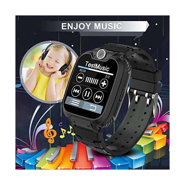 ?? CAMERA& RECORDER& MUSIC PLAYER: The kids smart watch support insert memory card, so you can take selfie, record your voice, and save in the card. Also can play the MP3 music that downloading from computer (Save the mp3 files on Micro SD Card:\ My Music folder). The sound quality is clear and the volume is adjustable.