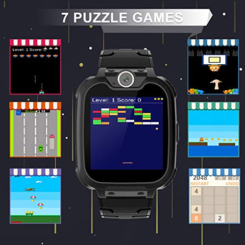 ??Fun Puzzle Game: This kids smartwatch built-in 7 learning games, Children can play and choose games by Touch Screen. That will effectively exercise their ability to respond, logical thinking and hand-eye coordination, best gifts for kids! And parents can limit the daily game time, let children play the game within a reasonable time.