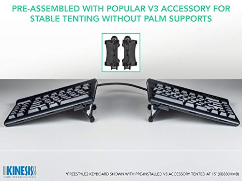 ADJUSTABLE TENTING: The Kinesis KB830 model keyboard is pre-assembled with the popular V3 tenting accessory which enables 5, 10, or 15 degrees of tenting (without palm supports) to keep forearms neutral for an optimal typing posture.