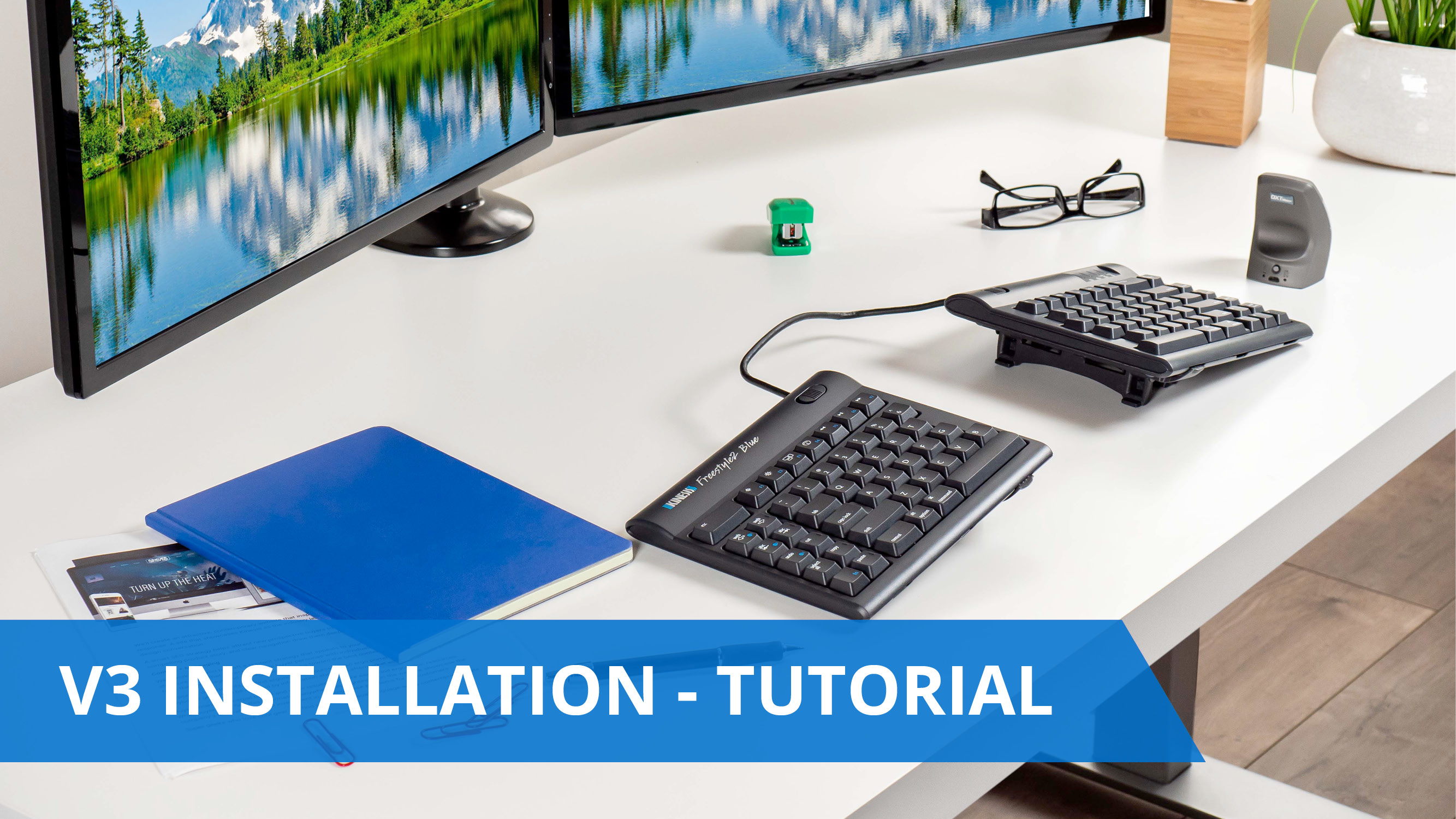 WHAT’S IN THE BOX: Freestyle2 keyboard with a standard Windows Layout and the V3 tenting accessory pre-installed onto the keyboard for maximum convenience, adhesive cushioned palm pads, detachable pivot tether for adjustable splay, and Quick Start Guide.
