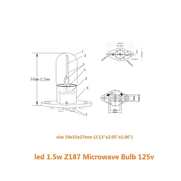 2 PACK,z187 microwave bulb 2A 250v MAX, 1.5w Led Filament bulb,20w Equivalent Incandescent Lamps,125v,size 54x52x27mm (2.13″x2.05″x1.06″), 50000hrs,5000k daylight