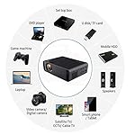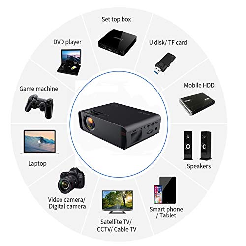【 WiFi Projector Pour iPhone, Samsung, Huawei Smartphone & Tablet etc – WiF and Multi-connection】Support connection mobile phone WiFi. Connection: HDMI, AV, VGA, SD Card and USB port, which is perfect for Movie, Music, Photo, TV, Game, Football match etc. You can also connect Box, Laptop, PC, DVD player, SD Card, USB Flash Drive.