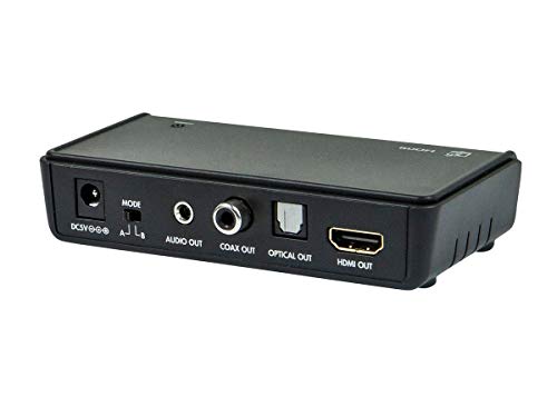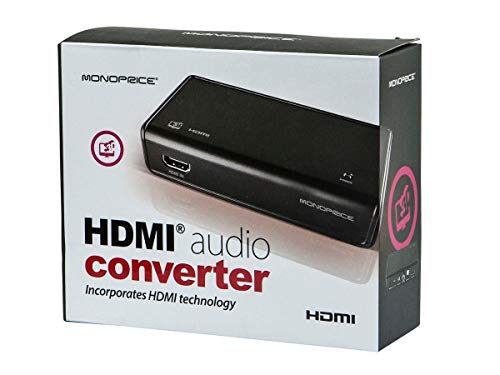 Get the most out of your home theater system with this HDMI Audio Converter from Monoprice! The Monoprice HD Audio Converter taps into the incoming HDMI signal to produce Digital Optical, Digital Coaxial, and Analog 3.5mm TRS stereo audio outputs. The original, unaltered HDMI audio/video signal is sent to your display as normal, while the audio outputs can be connected to your home theater audio system for a superior audio experience. The converter supports all HDMI 3D video modes and high-definition, multichannel audio, including Dolby TrueHD and DTS-HD Master Audio. A switch on the back of the converter allows you to switch between two different audio modes. Mode A allows the capabilities of the display to be sent to the source device. In most cases, this limits the audio output to 2-channel PCM. Mode B allows the source device to output any available audio mode. This allows you to select advanced multichannel audio streams for playback on your home theater audio system. Note: Monoprice strongly recommends using 22AWG, 24AWG, or active HDMI cables with Redmere technology to achieve the best results and to ensure minimum signal loss over longer distances.