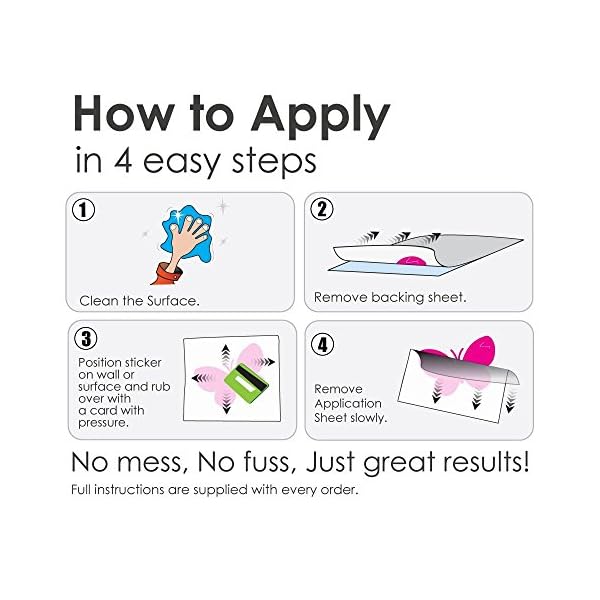 The sticker is covered with two sheets. Firstly clean the surface and then remove the transparent sheet on the back. Thereafter position sticker on surface and rub over with a card with pressure, until scraping to no air so far. Finally, remove the application sheet above slowly.