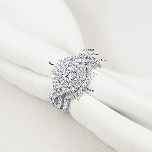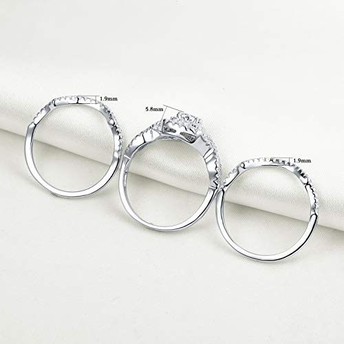 Newshe Wedding Rings for Women Engagement Ring Set 925 Sterling Silver 3pcs 2Ct White Cz Size 5-10