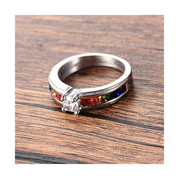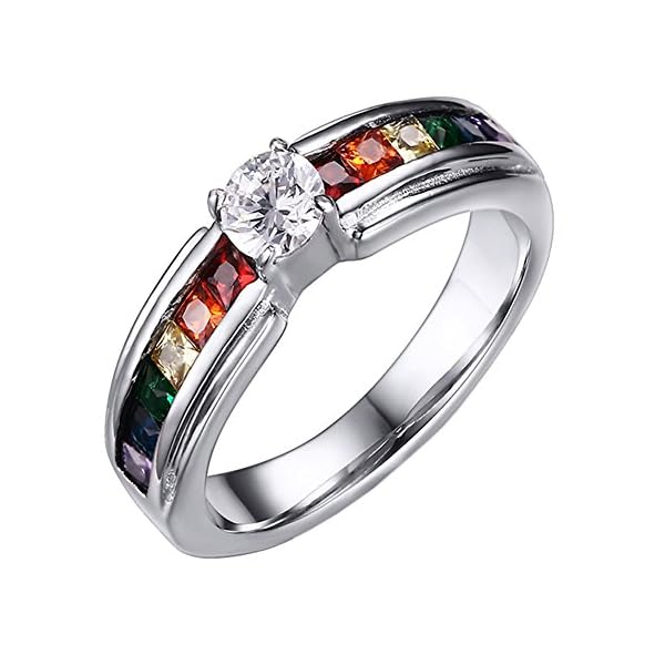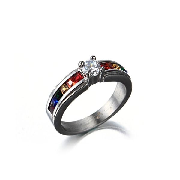 This rainbow ring is made out of stainless steel which has high strength and hardness. No rust, never fade and need low maintenance.