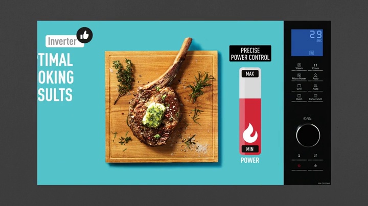 Inverter Technology with Turbo Defrost: Patented Inverter Technology generates a seamless stream of power and delivers consistent, evenly prepared food without overcooking; Advanced Inverter Turbo Defrost speeds up defrosting time. Power Source 120V / 60Hertz. Power Consumption 1460W