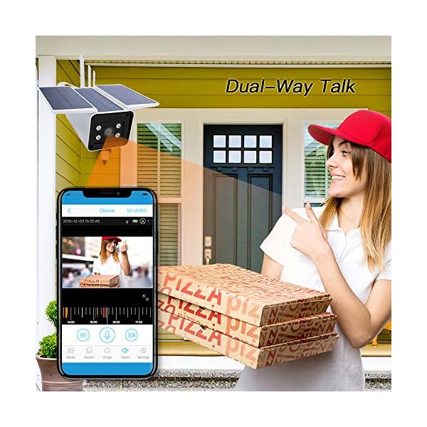 IP66 Weather Proof and Durable Material: The panoraxy solar security camera is made of iron plastic which is special for outdoor application. The construction is waterproof and considers the hot diffusion. IP66 housing, you don’t have to worry rain, snow and hot season. No problem to use it under the direct sunshine. It will be standby for you for four seasons.