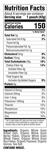 Certified USDA Organic whole grain rolled oats, barley, wheat, quinoa and rye with flaxseed