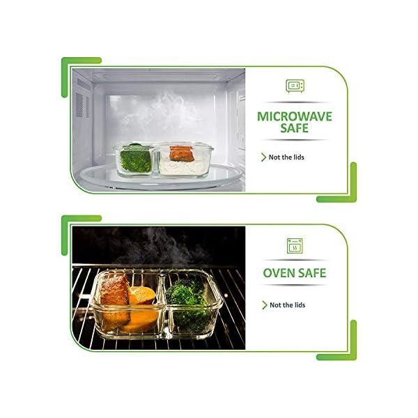 HELP YOU KEEP YOUR DIET – The portion control feature of the divided glass lunch containers allows you to regain control over your meals. Featuring two compartments, the portion control glass containers make it easy to organize your meals and keep your diet plan.
