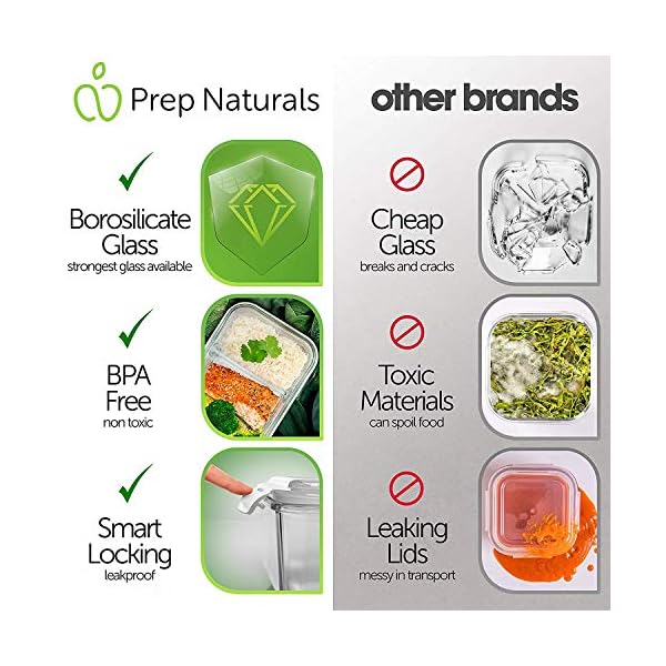 PREMIUM LOOK AND DESIGN – If function and style are what you’re after, Prep Naturals Glass Food Storage Set is hard to beat. The beautiful finishing and design of the glass meal containers make them perfect for gym, picnics, office lunches.