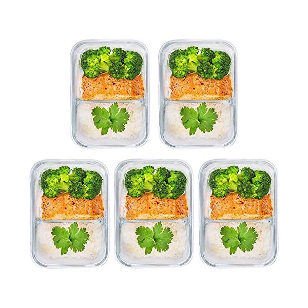 Prep Naturals Glass Meal Prep Containers Glass 2 Compartment 5 Pack – Glass Food Storage Containers – Glass Storage…