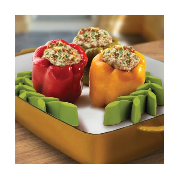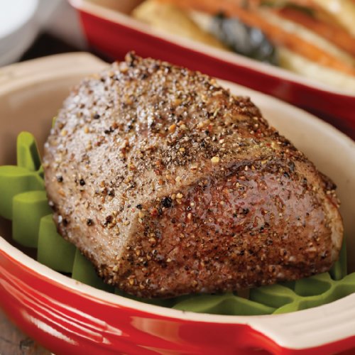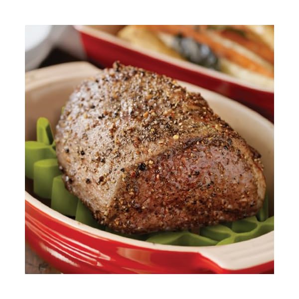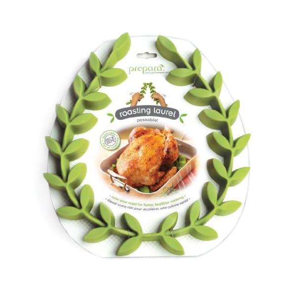 Prepara’s Roasting Laurel is an innovative way to keep foods out of grease and drippings while cooking. This heat-resistant silicone roasting aid keeps your bird or roast up and out of the unhealthy fats in the bottom of your roasting pan or dish. To use, simply bend and shape the laurel to provide a sturdy base for the roast, poultry or vegetable you are cooking. Place the Roasting Laurel in the base of your roasting pan, and the food on top. Place into the oven to bake. The Roasting Laurel helps the meat brown more evenly and eliminates sticking. It is bendable and nests into itself so you can form it to whatever shape is needed for the task at hand: gently supporting a fish for steaming, corralling root vegetables while baking and much more. Unlike metal wire roasting racks, it will not scratch enameled or non-stick pans. And, its flexibility makes the Roasting Laurel well-suited for a variety of tasks. This Roasting Laurel is BPA free, dishwasher safe, and heat safe to 500-degree F/260-degree C.