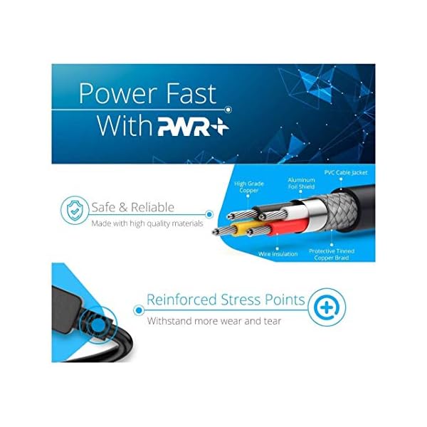 SAFETY: Pwr+ cables manufactured with the highest quality materials. CE/FCC/RoHS certified.