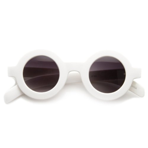 Retro Fashion Bold Frame Horned Rim Round Circle Sunglasses (White)