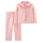 2-piece coat style pajama set with polyester button-front top and pant bottoms with an allover print.