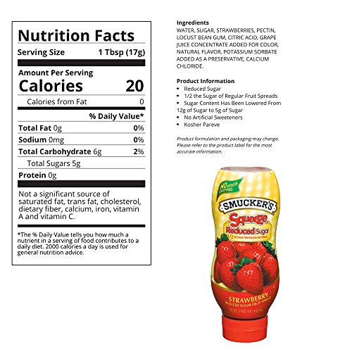 Smucker’s has turned fruit spreads updside down with easy to squeeze packaging. Smucker’s Squeeze fruit spread stores cap-down in your refrigerator making it ready-to-use when you are. And since you store it upside down, you are sure to get every last ounce of great tasting Smucker’s fruit spread.