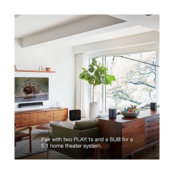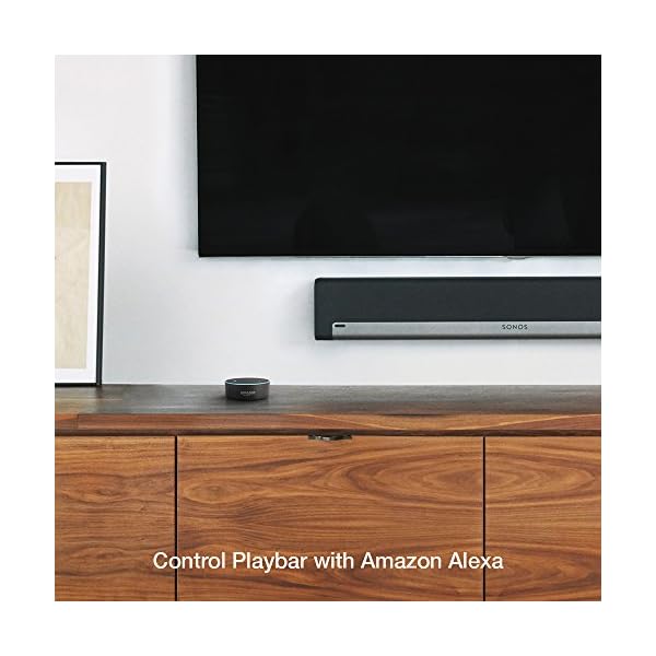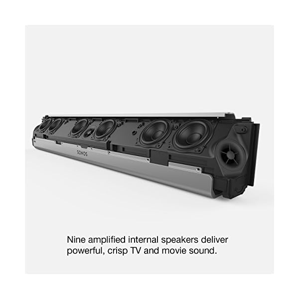 Sonos Playbar is the mountable soundbar for TV, movies, music, and more. Enjoy crisp dialogue and impressive bass from wall to wall with Playbar. Control it with the Sonos app, your remote, and more. Enjoy crisp dialogue and impressive bass from wall to wall with Playbar. Control it with the Sonos app, your remote, and more. Whether you mount it on the wall or place it below your TV on a stand or console, Playbar automatically tunes itself for the best possible sound. Playbar was specially tuned by Oscar-winning sound engineers to emphasize the sound of the human voice so you can always follow the story. Easily connect Sonos speakers in different rooms over WiFi to create a home sound system that brings every room and everyone together.