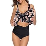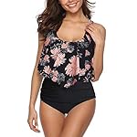 Tankini Top: Flounce design looks very cute, comfy and flattering. Removable soft padding offers great support and enhance your shape, Wide strap at front and two adjustable straps at back pretty secure and the unique design also helps you push up.