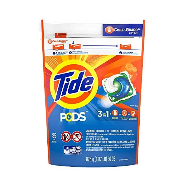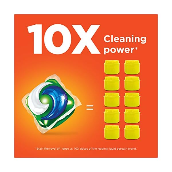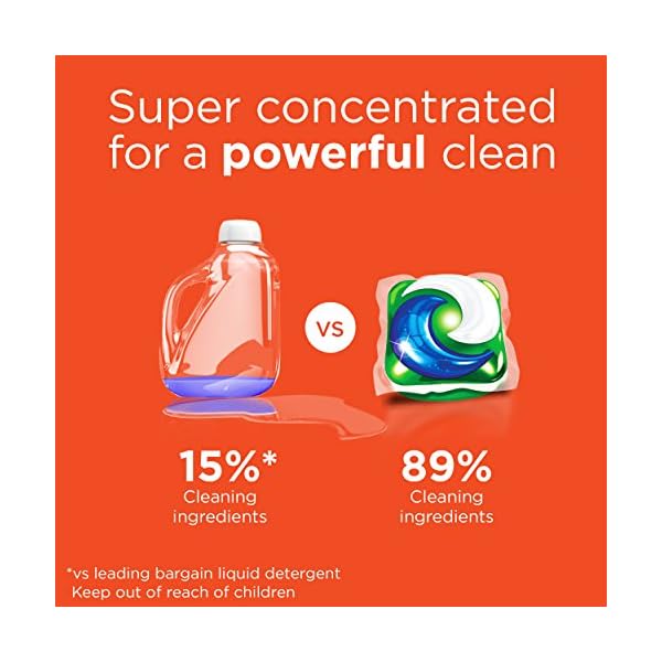 The new and improved Tide PODS laundry detergent pacs are super concentrated with 90 percent cleaning ingredients to rejuvenate even dingy clothes for brighter brights and whiter whites, wash after wash. Each Tide PODS is a 3-in-1 breakthrough laundry solution with highly concentrated detergent, stain remover and color protector, giving you more bang for your buck. Tide PODS pacs are small but powerful. They pack 10X cleaning power* in an innovative, three chamber design separating key ingredients until they hit the wash for maximum cleaning power. More than just a liquid in a pouch, these reformulated laundry pacs reveal Tide’s brightest clean yet. Its special film enables the multi-chamber technology to dissolve in both hot & cold water. Tide PODS are formulated with quick collapsing Smart SudsTM. It targets tough stains and works in both HE and standard washing machines. For superior performance, place 2 Tide PODS pacs into the washing machine drum before you add clothes for large loads. For smaller loads, use 1 laundry pac. *Stain Removal of 1 dose vs. 10X doses of the leading liquid bargain brand