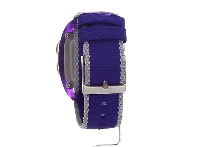 Transluscent purple 34mm resin case with acrylic lens; easy-to-read gray digital display; Indiglo light-up watch dial