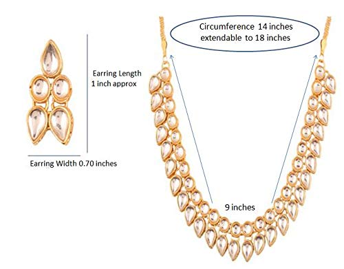 SPECIFICATIONS : Necklace 9 inches with extendable flat chain/links up to 18 inches. Earring weight (single) 6 gms. Earrings length 1 inch. Earring width 0.70 inch.