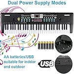 Multifunctional 61 Key Piano:This multifunctional keyboard piano is suitable for beginners to advanced and features 61 standard keys + charge function + piano function + dual speaker + recording / programming / insertion + volume / tempo + display + microphone + music stand + 10 Styles Music Rhythm +6 Demo Songs +16 Timbre Number