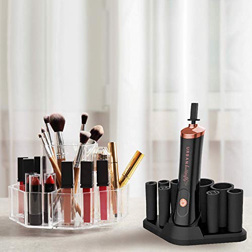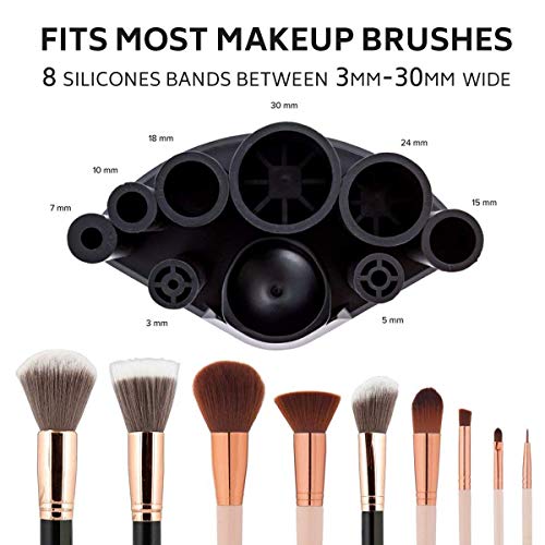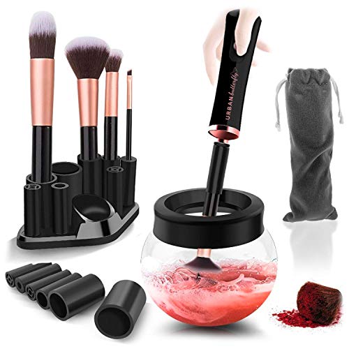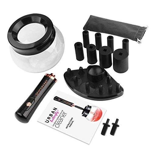 Urban Butterfly Electric Makeup Brush Cleaner Spinner, Deep Cosmetic Brush Cleaner Mat with 8 Size Rubber Collars, Black