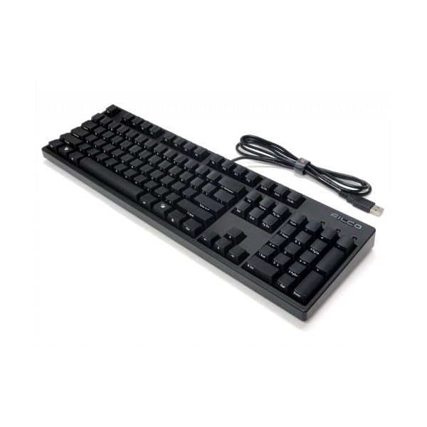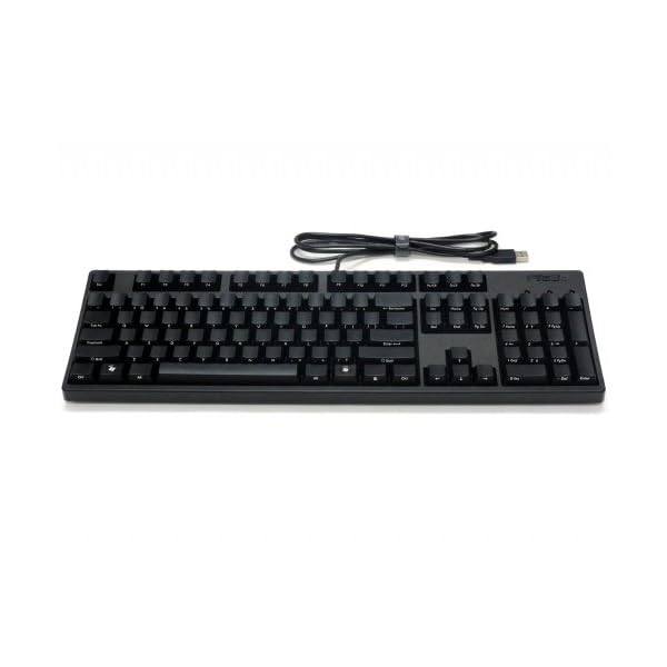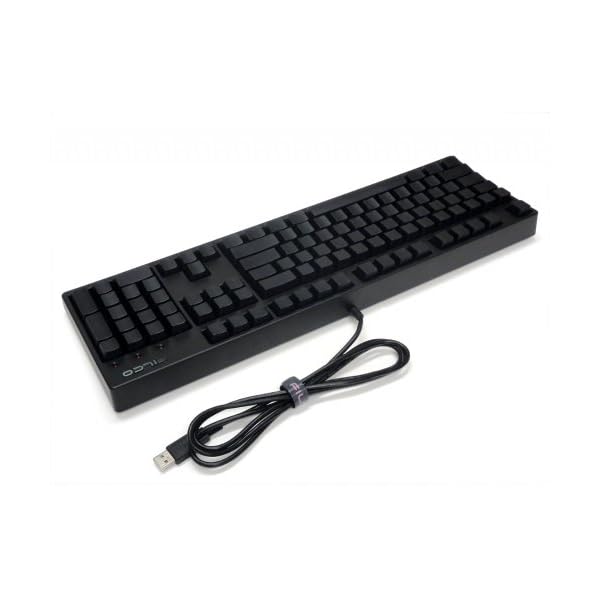 Filco’s Ninja has the same layout as a standard US keyboard, but instead of having legends on the top of the keys it has legends on the front of the keys. This Keyboard combines the high quality typing feel of Cherry MX switches, steel mounted in a rock solid body with full N-key Rollover function, all put together in a very slick package. N-Key Rollover allows multiple simultaneous key presses to be recognized by your computer. A big help for the superfast typist or serious gamer. These keyboards just make you want to type. The Ninja comes with 2 sets of Windows keys 1 set top printed, 1 set front printed, and a key puller to help you change the keys. Linear action (Red switch). Gold contacts. 4.0mm travel. 2.0mm actuation point. 45g ~ 1.6oz actuating force keyswitch. Switches tested to 50 million actuations. Red LED’s.