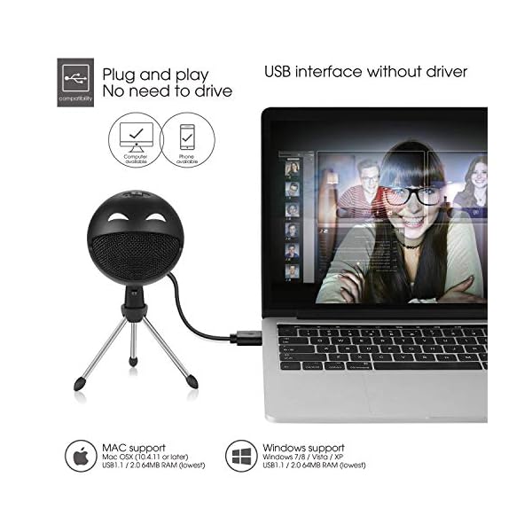Professional audio coding chip and the advanced custom condenser capsule offers crystal clear audio for Recording,Podcasting,Skype, Messages.