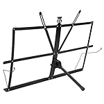 This music stand desk can rest on any flat surface when unfolded it. Ideal for classroom, private studio and more. Rubber foot on back support to prevent any scratching of table top or other surface. Foldable design, easy and convenient to carry with. Made of quality metal, making this product a sleek and reliable music sheet stand.