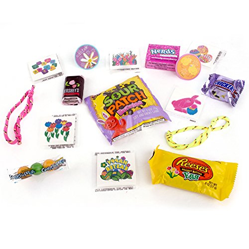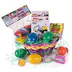 - Each Gift Basket includes (1) Assorted Construction vehicle kit, (1) 50 count building blocks bag, a package of easter grass, 5 solid eggs, 2 friendship bracelets, 6 easter tattoos, 2 rings, an easter pencil, plus assorted chocolates and candies all in a 8″ wide basket
