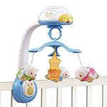 Help your baby drift off to dreamland with the soothing slumbers sheep mobile. Your little one can watch as three fluffy sheep spin around on the mobile while a calming night sky is projected onto the ceiling in three different colors. As your baby grows, the projector can be removed, placed on a dresser and used as a light projector and music player. Parental controls let you customize the mobile by adjusting the volume, light projection, spinning and sounds. The remote control allows you to play or pause the music and sounds and adjust the volume within a 30 foot range without entering the room. The sound sensor reactivates soothing music or sounds when your baby cries. Sweet dreams!