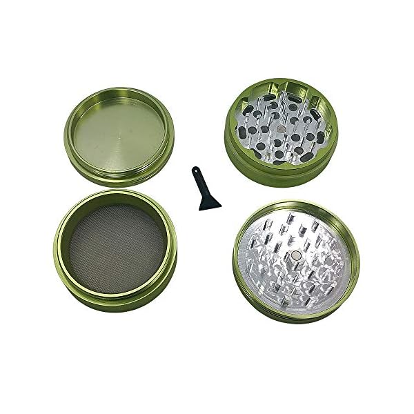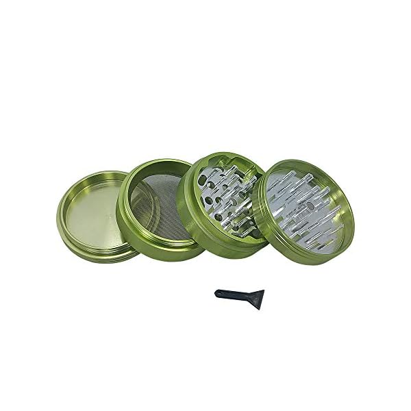 Why So Serious 4-Piece Metal Herb & Spice Grinder with Pollen Catcher and FREE Scraper – 2.5 Inch Size (Green)