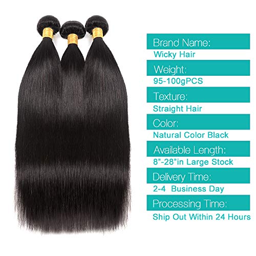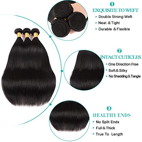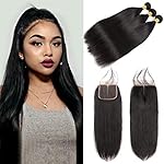 ♥ Hair Size: 3 Bundles with Closure, Natural Black Color; 100(+/-5g) Per Bundle, 35-50g/ pcs of closure. Lace size: 4inchx4inch