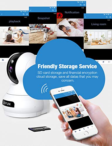 FRIENDLY CLOUD & LOCAL STORAGE: MIPC cloud for Lefun surveillance camera saves all alert videos, where you can watch, download and share freely; this wireless camera also supports micro SD card storage for record videos and images, up to 128GB.