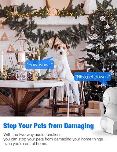 RELIABLE SOUND/MOTION DETECTION: When this pet camera detects your dog is barking, alerts will be sent to your phone and videos will be recorded, pushing you into live feed to interact with your dog and calm it down via two way audio feature.