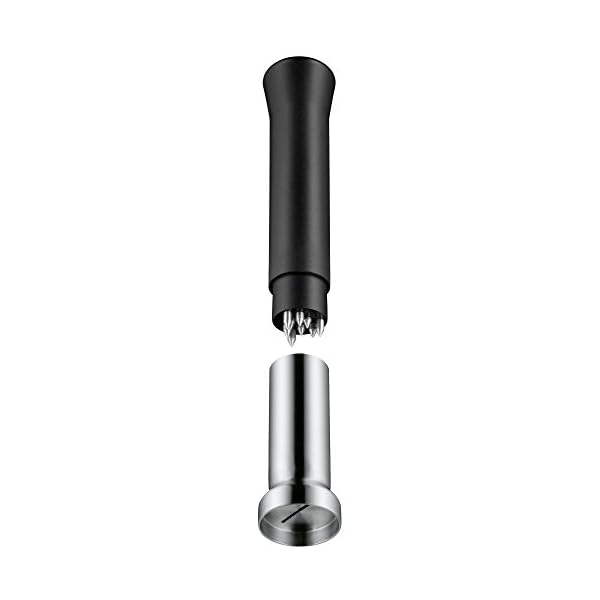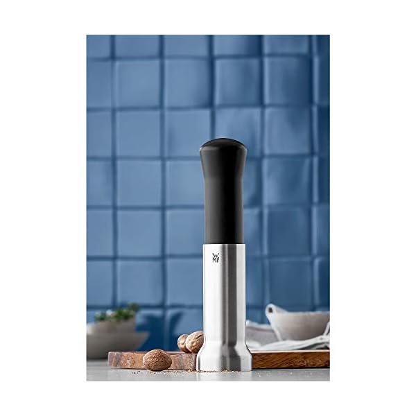 Meat and fish, fresh seasonal fruit and vegetables all deserve to be prepared with care and using the right utensil. With WMF’s Top Tools vegetable slicers and kitchen graters you can slice and grate practically any ingredient. Get cracking and let potatoes, courgettes, carrots or kiwis skim across the sharp blades. Thanks to the non-slip handles and additional finger shield, you can even prepare beetroot safely, right down to the tip, leaving no waste. The super-sharp blades are made from special blade steel which makes light work even of hard vegetables. The range is extremely handy for inspired salad variations: the interchangeable inserts for the vegetable slicers let you decide how coarse or fine your peppers, cucumbers or radishes are sliced or grated before they are added to crisp lettuce leaves. All the elegant kitchen utensils from the Top Tools series are dishwasher-safe. The nutmeg mill from WMF has proven to be rather nifty. It only consists of two parts: a stainless steel body and an upper part made of plastic. The mill holds the hard nut tightly and grinds a fine nutmeg powder with its sharp blades. You should only grind as much as you need, because the aroma disappears quickly. Practical: The nutmeg can be stored inside the mill so that it is ready to use next time. The nutmeg mill is easy to clean and can be cleaned in the dishwasher.