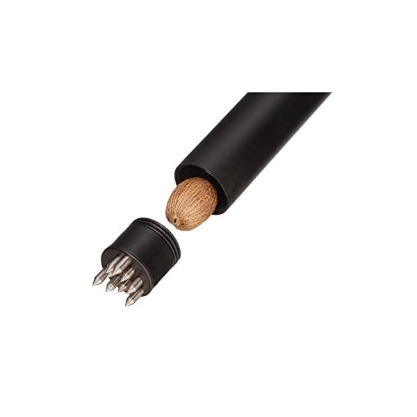 Breaking up nutmeg is child’s play and storage is even more stylish and clever. Place the nut into the stainless steel body and attach the black plastic part.