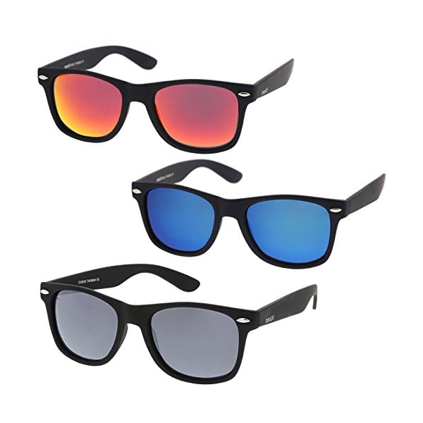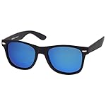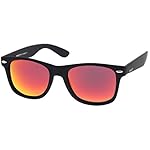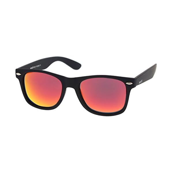 Bold and iconic, these large classic horn rimmed sunglasses feature stunning colored mirror lenses and metal rivet details. Complete with stylishly wide arms and a matte finish, this versatile style can worn anywhere from a day at the beach to outdoor parties by the pool. This zeroUV exclusive product is made from a plastic based frame, metal hinges, and 100% UV protected reflective flash mirror lenses.