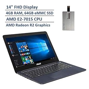 2020 ASUS Thin & Light 14″ FHD Laptop Computer, AMD E2-7015 Dual Core Processor, 4GB RAM, 64GB eMMC SSD, VGA Camera, HDMI, 1 Year Office 365, Windows 10 S, Blue